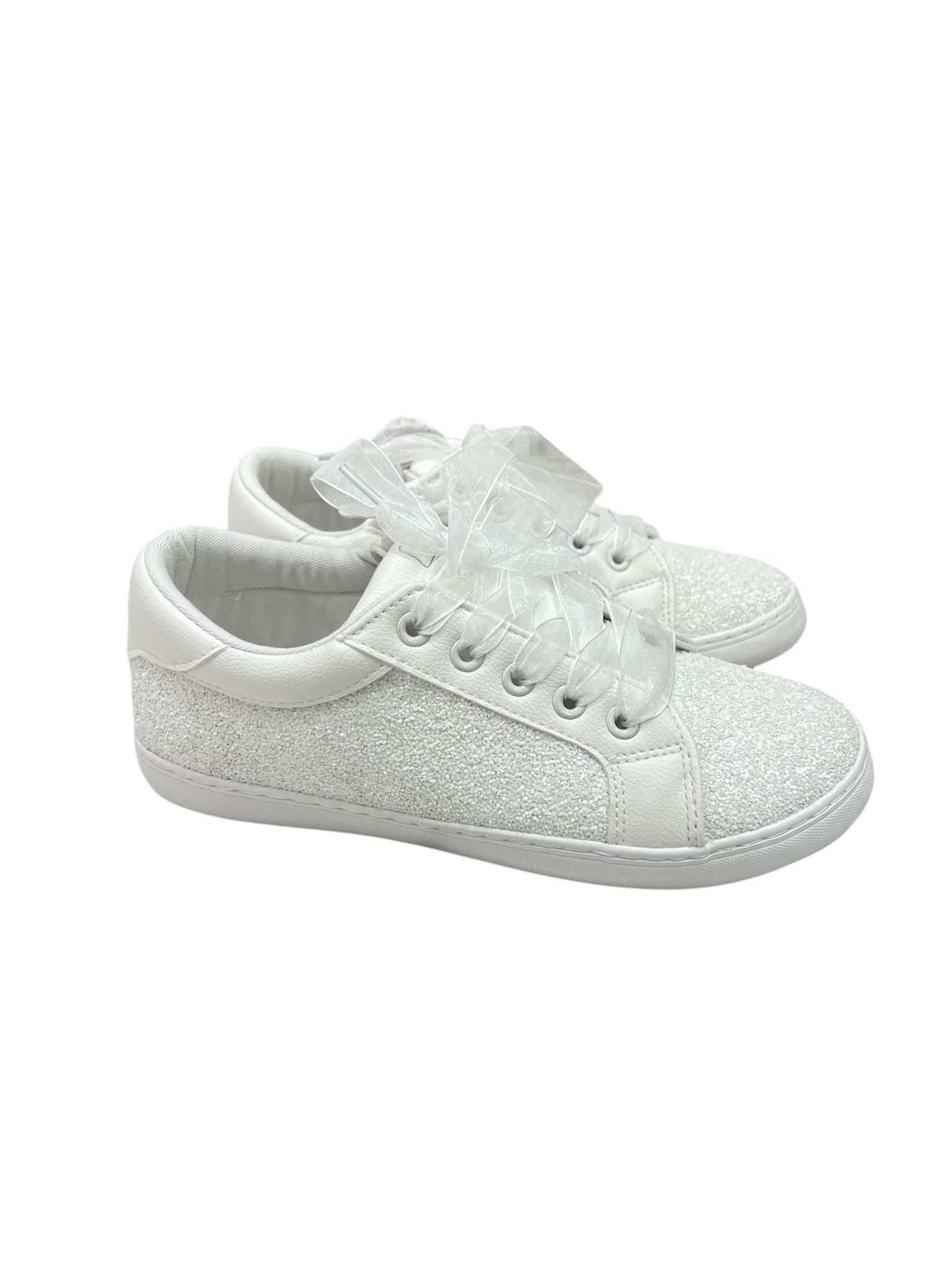 sneakers MAYORAL, tomaia in tessuto glitterato bianco con chiusura stringata con lacci di raso.Adatta pe outfit sportivi ed eleganti