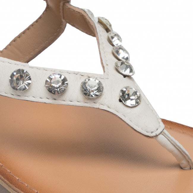 sandalo infradito bianco; chiusura con fibbia regolabile; suola e sottopiede in cuoio.