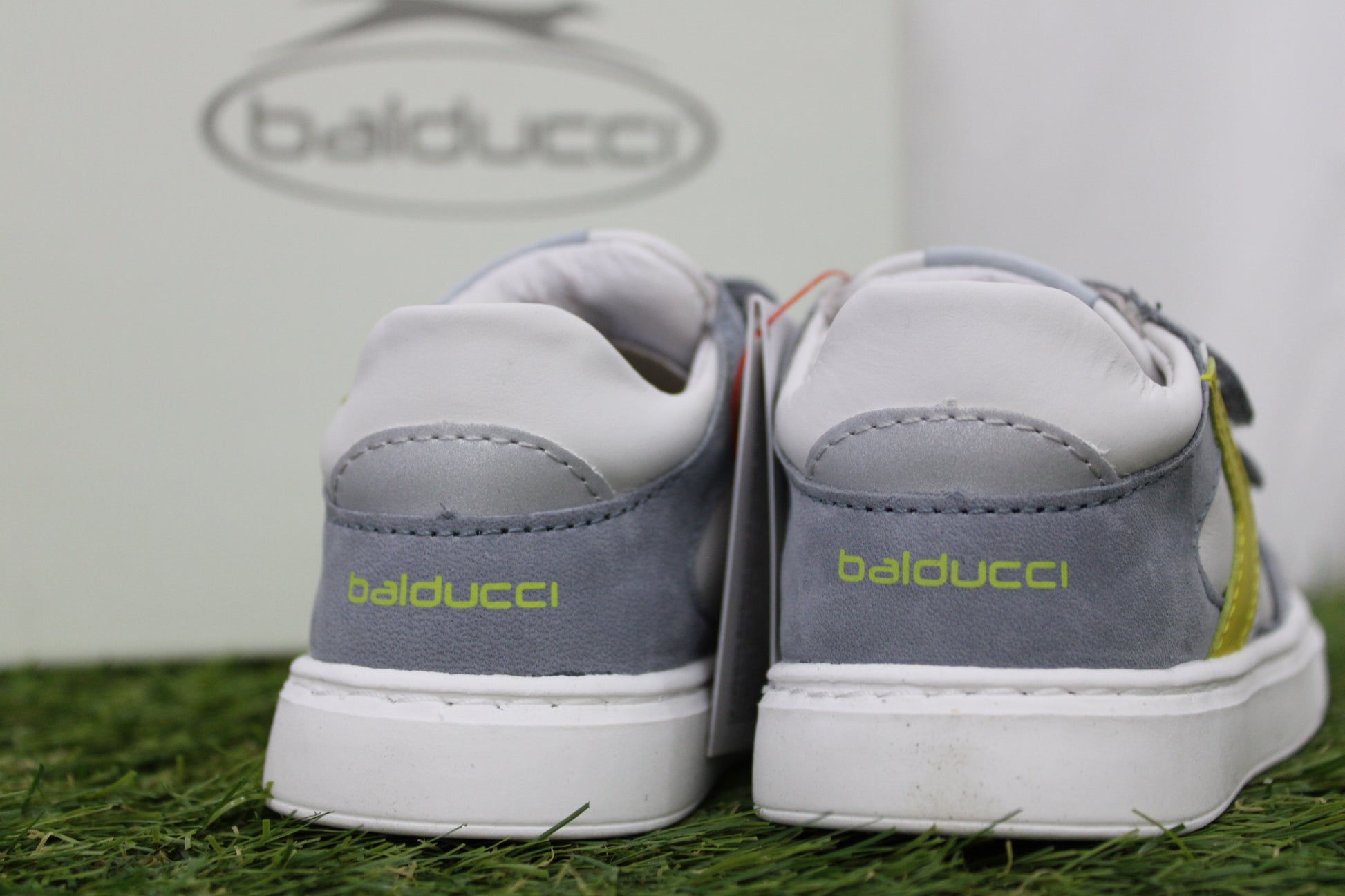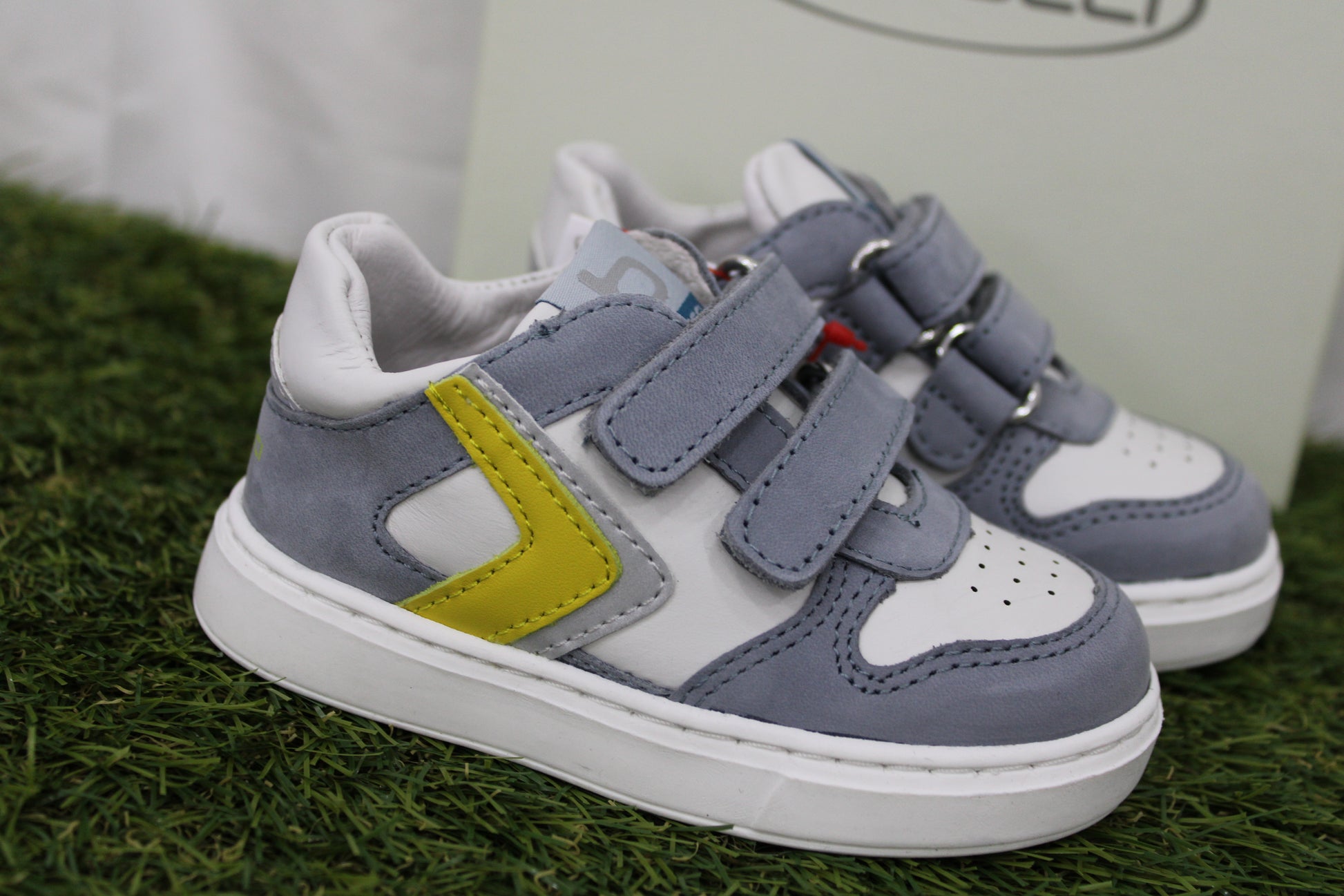 sneakers balducci in pelle e camoscio, chiusura con doppio velcro e presenta colori tra l'azzurro e il giallo