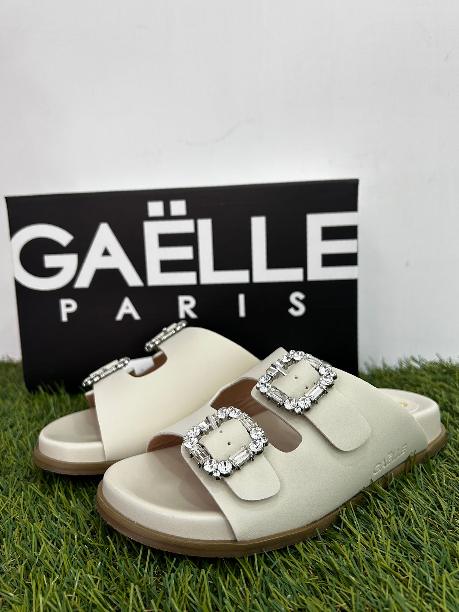 ciabatta in pelle beige mod.birkenstock , stringhe gioiello regolabili