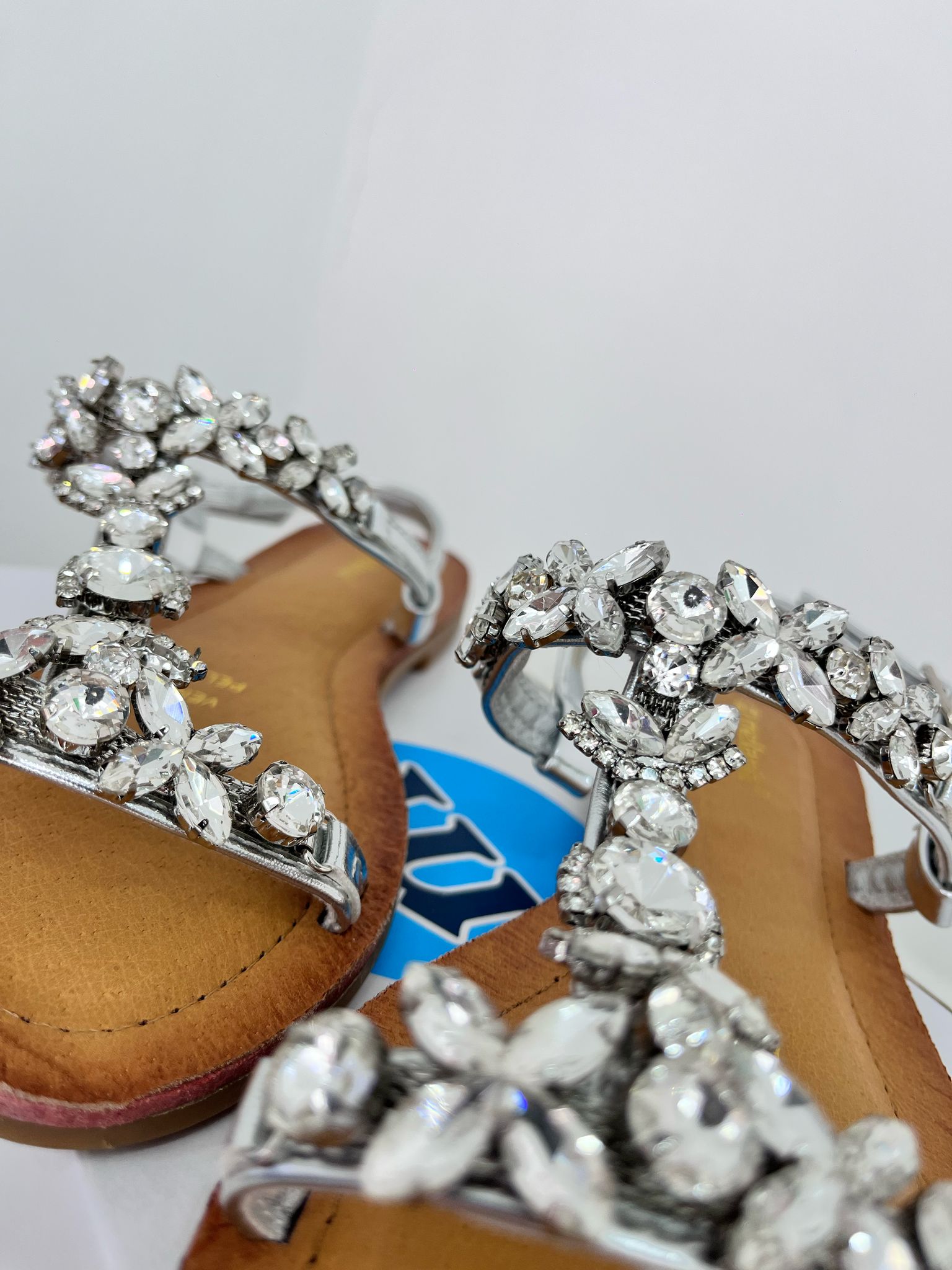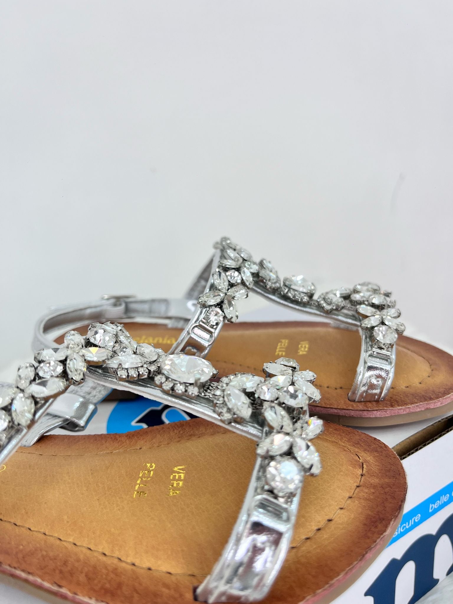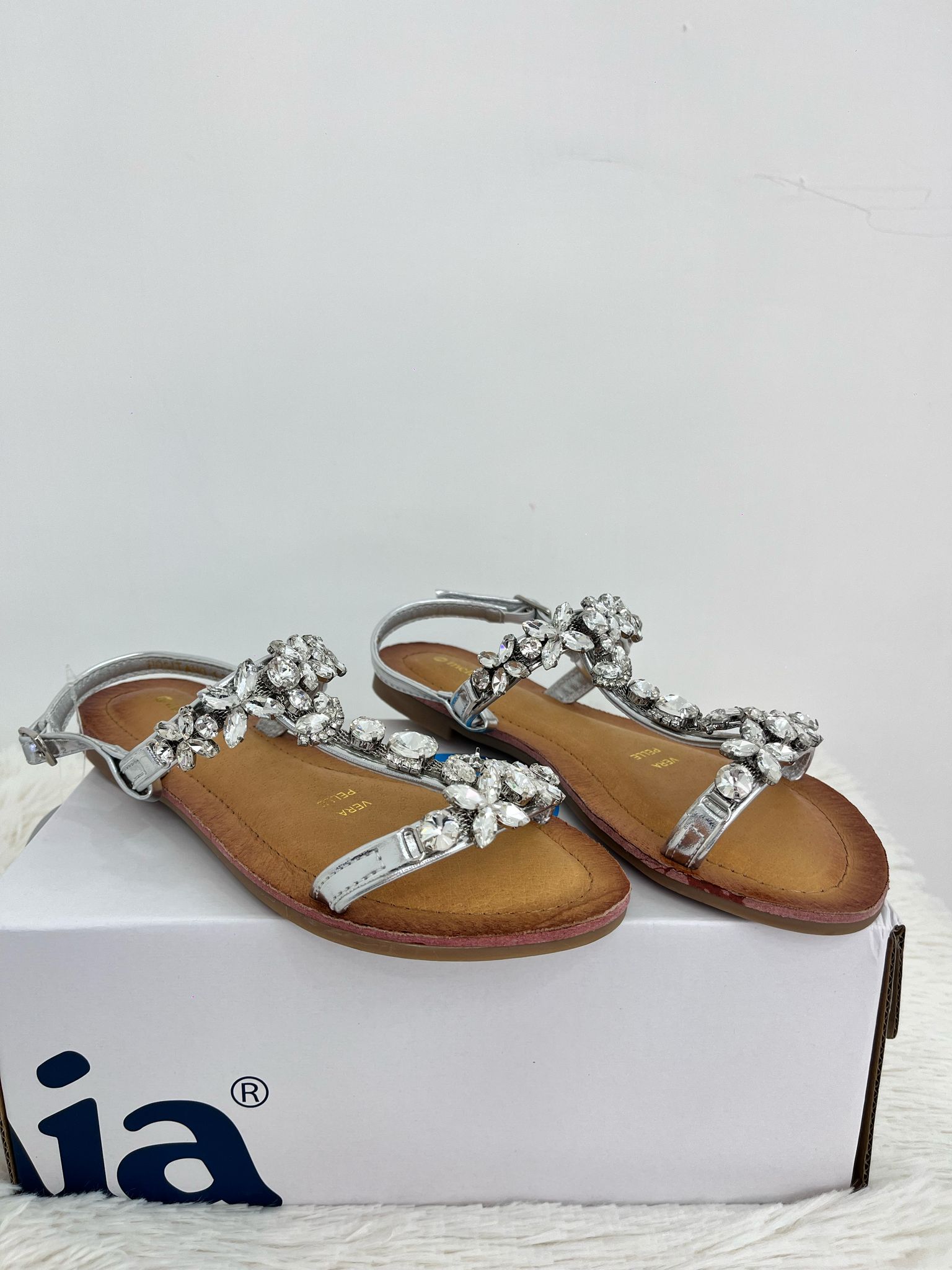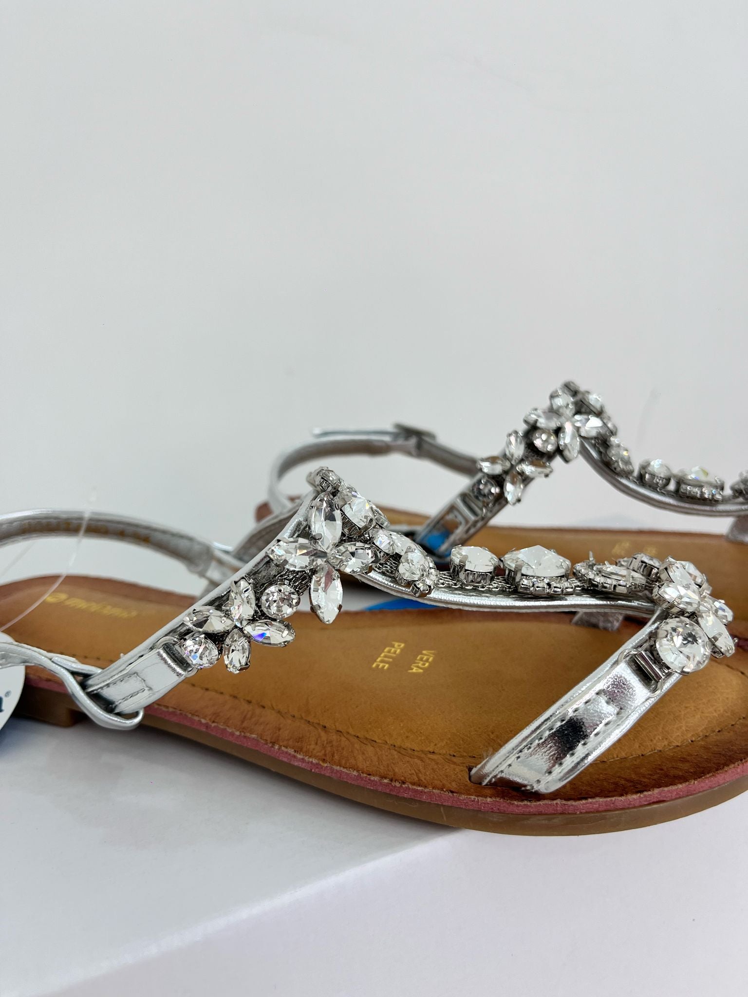 sandalo in cuoio, sandalo decorata con fascia con pietre in argento, con chiusura regolabile