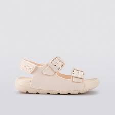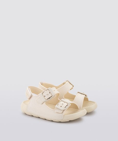 Sandalino in gomma con due fibbie, comodo grazie al suo plantare imbottito .