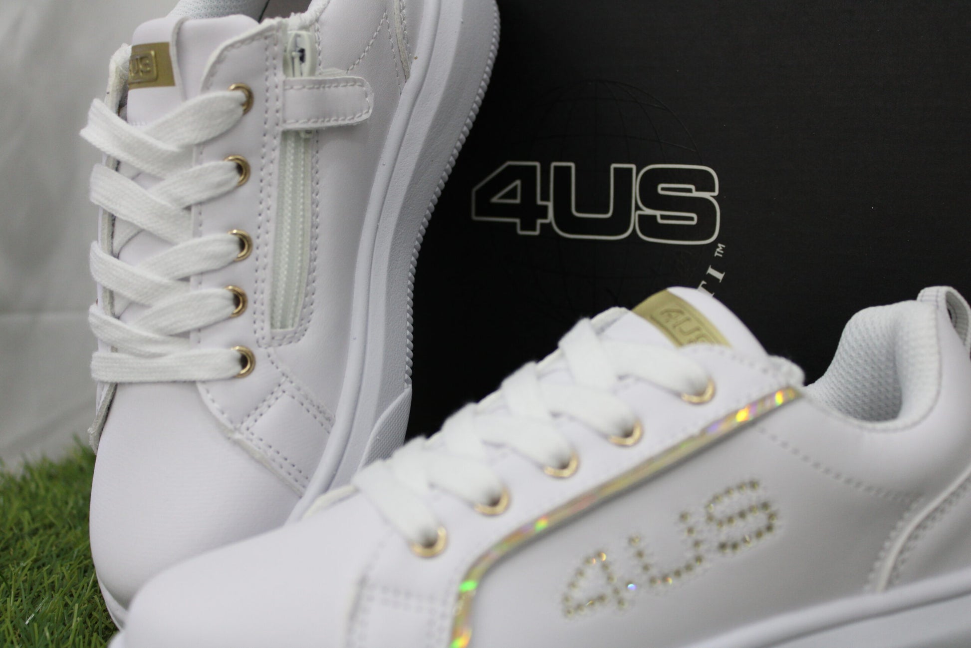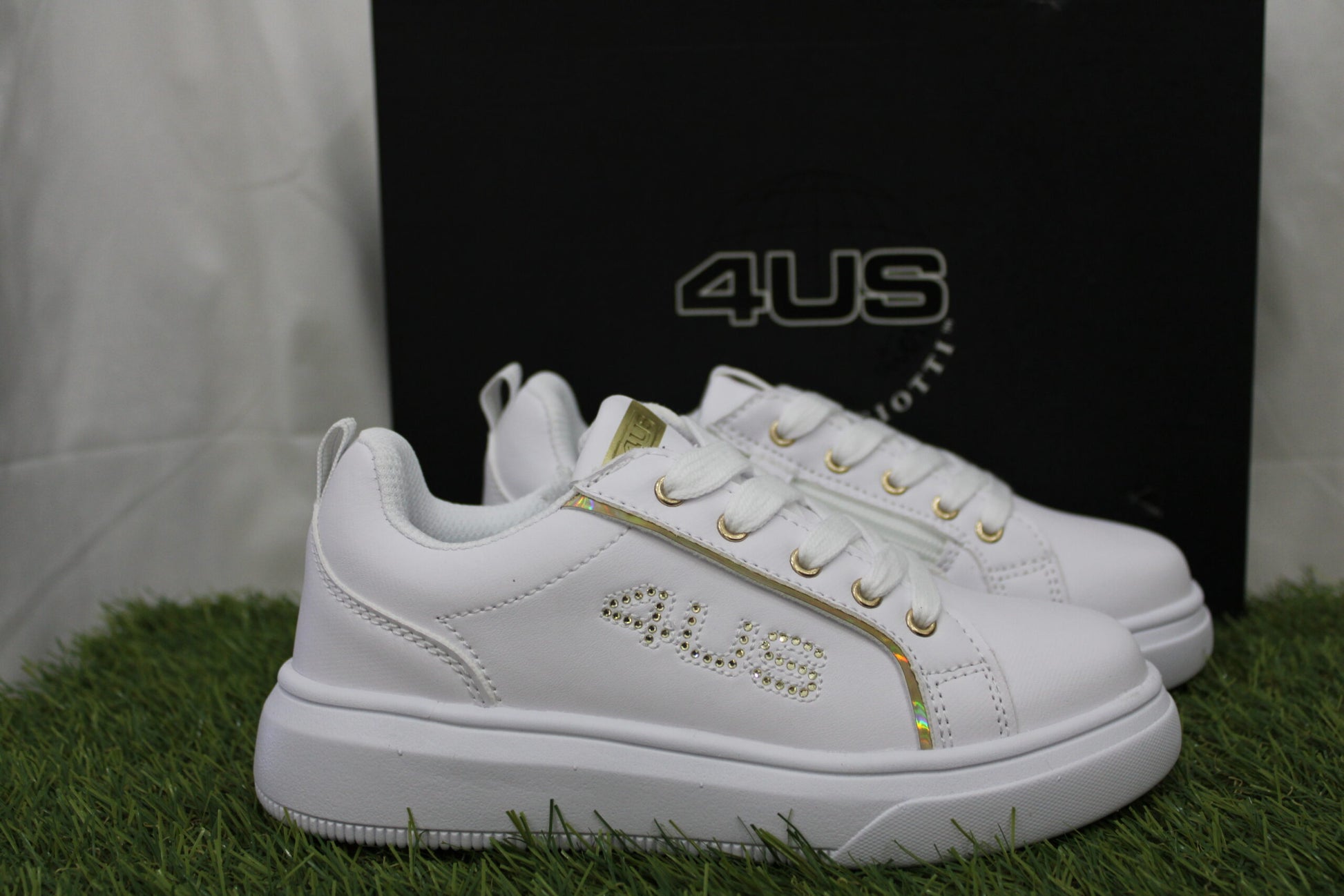 Lateralmente presenta logo 4US brillantinato oro