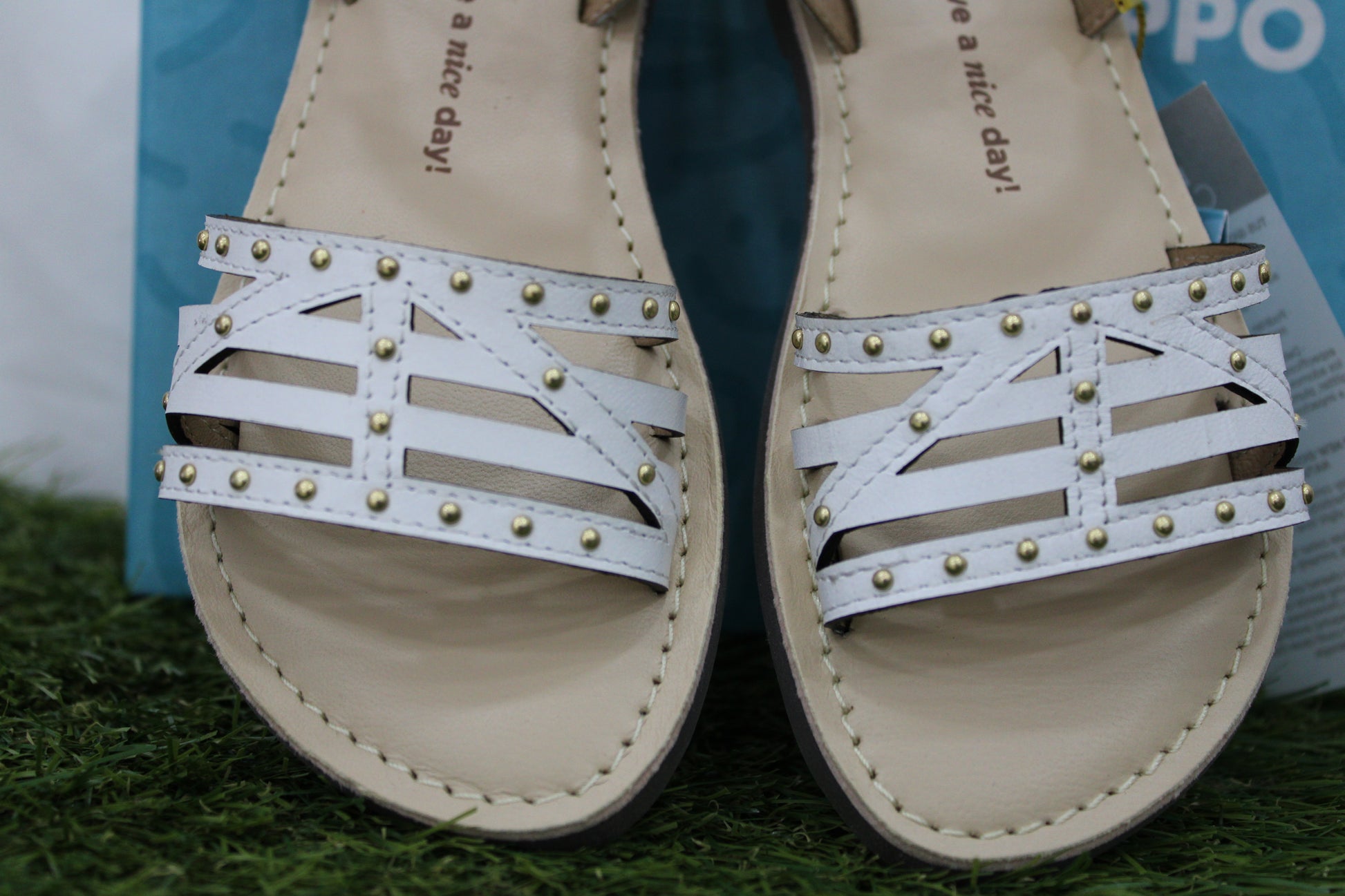 sandalo bianco, traforato con chiusura alla caviglia con velcro